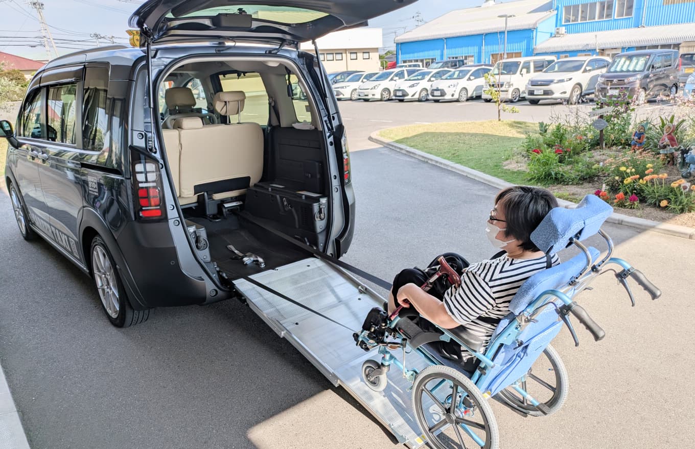 スロープ付きのリアゲートを備えており、乗り降りもスムーズ。車内はゆとりある空間のため、同乗されるご家族も快適にお過ごしいただけます。